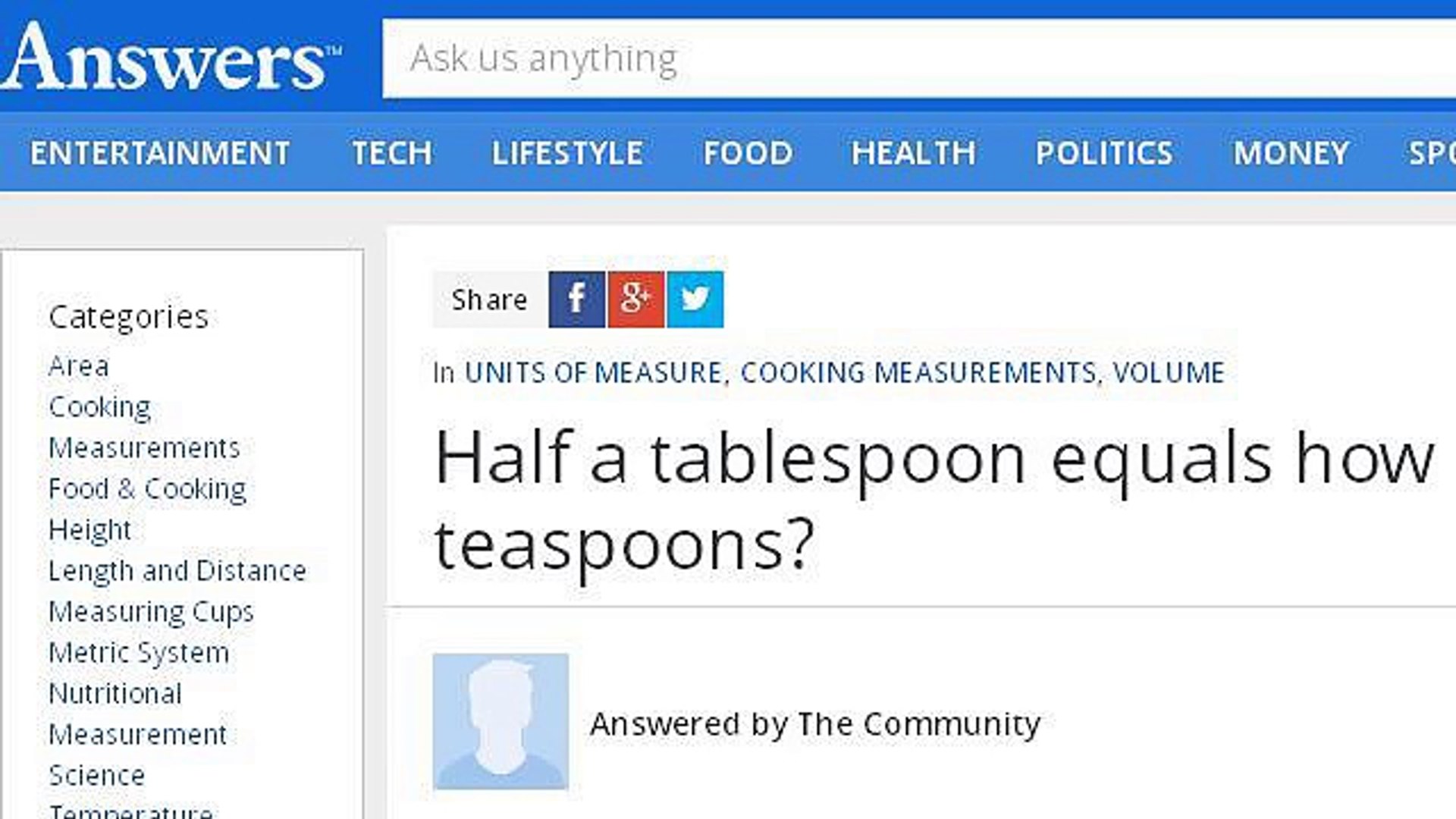 The bigger one's spoons in every cutlery set or flatwares are called tablespoons. Careful measurements are important to the success of most baking recipes, since baking requires a two ounces are equivalent to 1 tablespoon. It's important when measuring wet ingredients that you use a liquid measuring cup. Includes a handy cups and tablespoons reference chart. Likewise, how many teaspoons is half a lemon? If you don't have any measuring tools with you, use object comparisons. A half tablespoon is, therefore, equal to 1 1/2 teaspoons. What is half of a tablespoon? What is half of a tablespoon? Tablespoons and teaspoons are units of volume that are handy for measuring smaller amounts of ingredients (e.g. Start date oct 20, 2009. How many cc in half tablespoon? The smaller spoons in the cutlery sets are called teaspoons.
